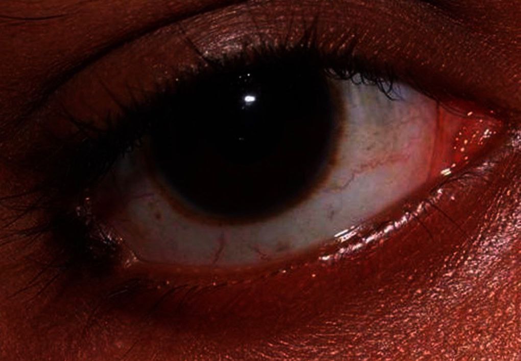 Partial absence of lower eyelashes and coloboma of the lower lateral eyelid.