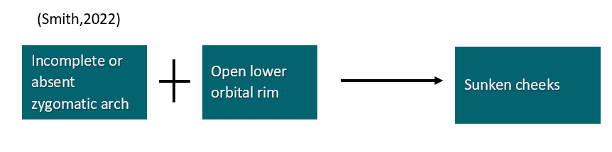 of the eyelids and a triangular appearance to the maxillary and malar region of the face